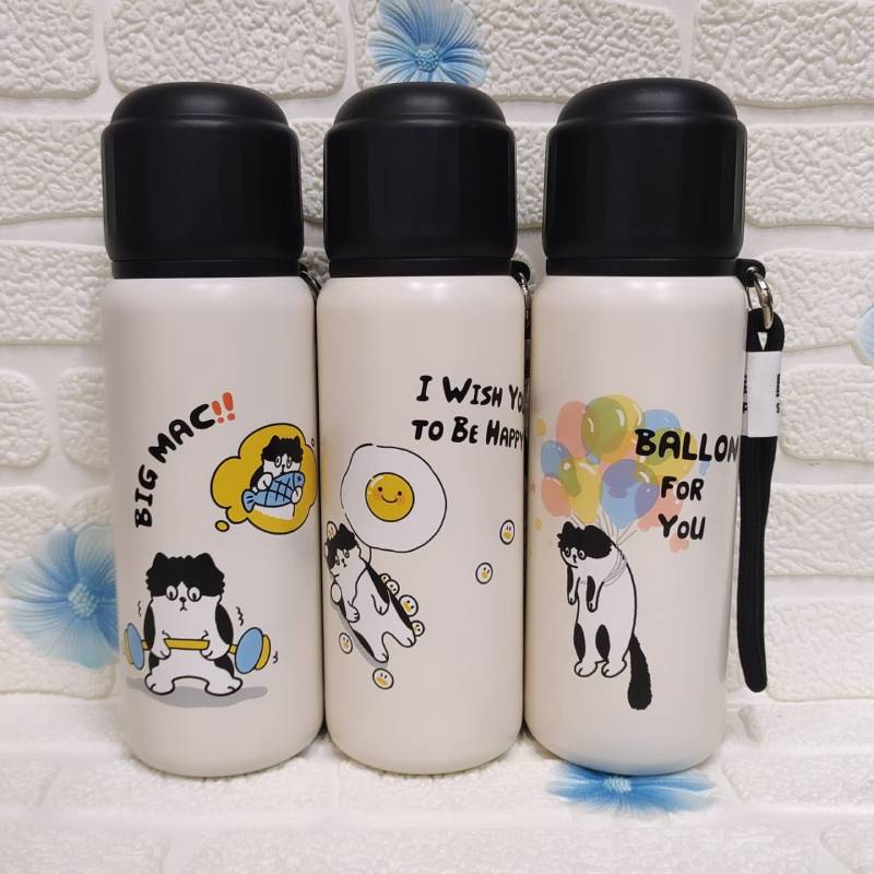 جنس بدنه استیل دوجداره 316 نگهدارنده عالی سرد و گرم -  رنگبندی مات پاستیلی جذاب - دارای لبی آسان نوش بدون نشتی - بند دستگیره مچی محکم و زیبا - حجم 390 میلی لیتر - ارتفاع 18/5 قطر کفی 7/5 سانتیمتر - طراحی زیبا با سری عروسکی سیلیکونی کیفیت عالی برند اورجینال وارداتی -
