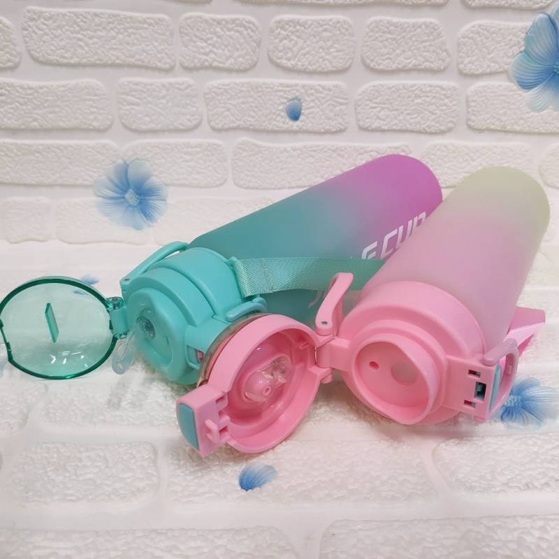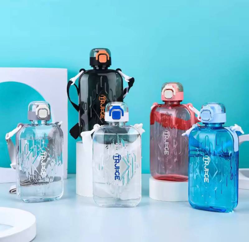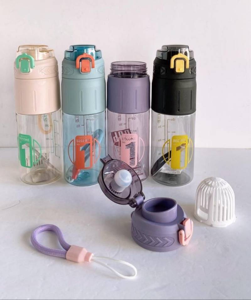 جنس بدنه پلی کربنات نشکن با مقاومت حرارتی عالی - شفافیت فوق العاده - فاقد مواد شیمیایی مضر بدون ماندگاری طعم و بو - درب قفلی ضامن دار بدون نشتی - دارای نی نوش و بند دستگیره مچی  - حجم 900 میلی لیتر - طراحی زیبا کیفیت عالی وارداتی -