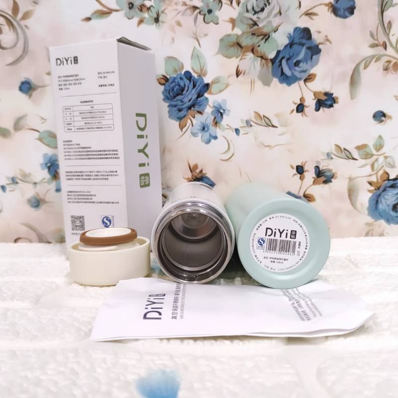 جنس بدنه استیل دوجداره 316 نگهدارنده عالی سرد و گرم - درب پیچی واشردار بدون نشتی - طراحی زیبا جمع و جور و جیبی کیفیت عالی برند اورجینال معتبر DIYI بابارکد شرکتی - ارتفاع 12/5 قطر کفی 4/5 سانتیمتر حجم 120 میلی لیتر -